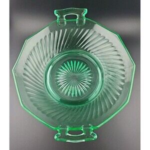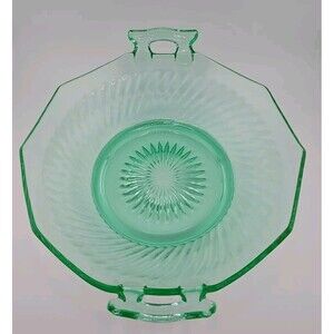 Uranium Glass - Vintage Imperial Green Twisted Optic 10" Handled Serving Bowl