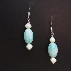 This listing is for the pair of Czech Uranium glass bead earrings pictured. The glass beads glow under blacklight due to the Uranium used to make them. They hang from hypoallergenic, silver plated and nickel free earwires. They were crafted by me and are new and have never been worn. The beads on these are a blue mix with small dotted indentions with custard bicones on either side. The dotted beads have a swirled glow and the bicones have a bright blacklight glow.