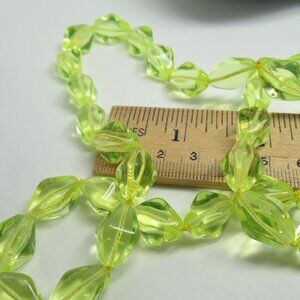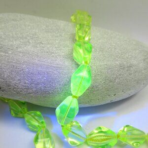 This listing is for the yellow Vaseline Uranium glass bead necklace pictured. It is new, never worn and made from vintage from the 1990's Czech glass yellow green toned lantern beads. It was hand knotted (by me) using durable yellow Griffin Nylon cord. It is 25.5 inches of continuous beads. It easily slips over the head and lays nicely on the bust. It has 39 beautifully glowy uranium beads. The beads glow brightly under blacklight due to the Uranium used in making the glass. It was hand knotted with love.