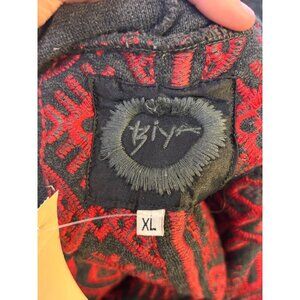 Urban Artisan Biya Hooded Cardigan Geometric Red & Grey Knit Sweater XL