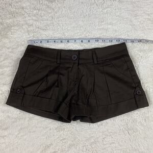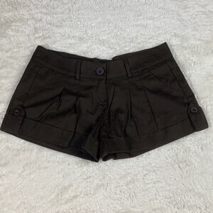 Stylish dark brown shorts. Features button accents. Perfect for casual wear.