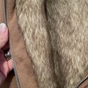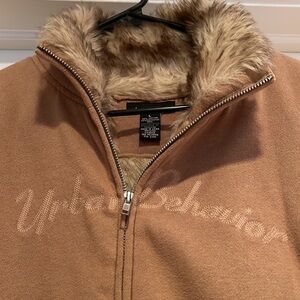 Urban Behavior Faux Fur Lined Camel Warm Full-Zip Sweatshirt Size Large Y2K