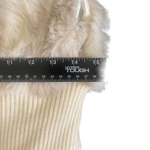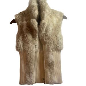 Urban Behavior Women's Vest, One Size - Cream. This regular-sized vest features a soft faux fur and knit outer shell, designed with a sleeveless cut, large collar, and zippered front, making it an ideal layering piece for various occasions from casual outings to more chic events. The vest is in excellent pre-owned condition, showing minimal signs of wear.