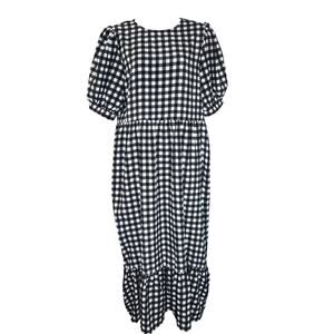 Urban Bliss Wom 8 Short Sleeve Plaid Ruffle Tier Midi Dress Cottagecore Prairie