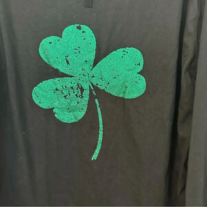 Urban Buck Women’s Black Long Sleeve Buttoned V-Neck Green Clover Top Sz 2XL NWT