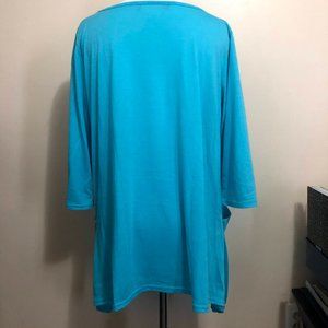 Urban CoCo Blue Three-Quarter Sleeve Handkerchief Hem Top (XL)
