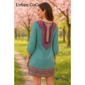 Urban Coco Teal Green Boho Dress Sz. L