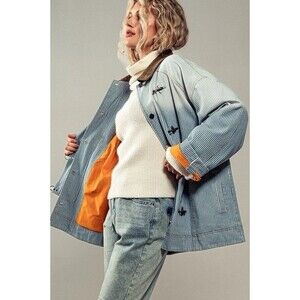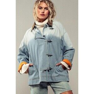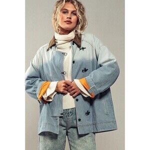 Urban Daizy Denim Jacket Womens M/L Blue Pinstriped Gradient Ombre Button Hooks