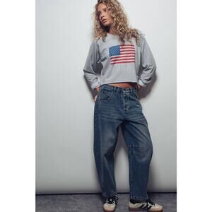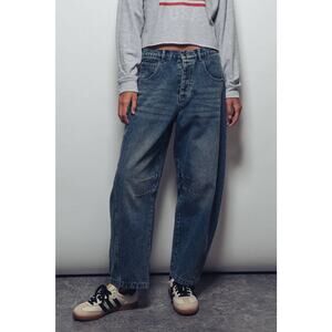 Barrel leg jeans with light dirty wash and unique inner inseam stitching for a relaxed, western-inspired look—ideal for spring and summer 2025 outfits. Features: • 88% Cotton, 12% Polyester • Barrel leg silhouette • Inner inseam stitching detail • Light dirty wash denim • Imported