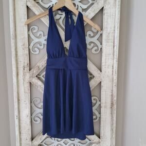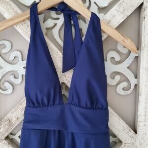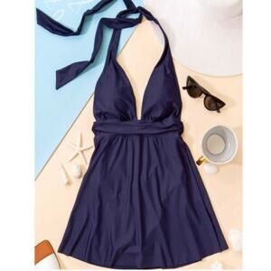 Navy blue one-piece halter swimsuit dress by Urban Daizy in a size small.