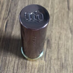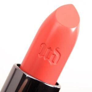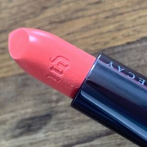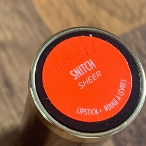 Snitch is a slightly warm-toned, dark peach with a pearl finish. It is a discontinued lipstick.