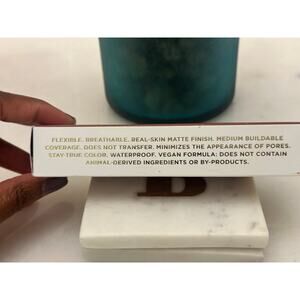 Is weightless, breathable, and flexible. Blends seamlessly, minimizes the appearance of pores. Lightweight and waterproof. Won’t transfer.