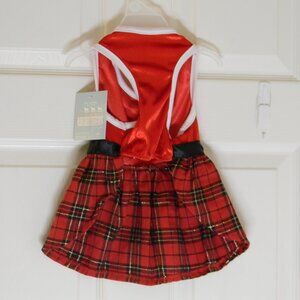 Urban Essentials Pets Christmas Dog Dress Plaid Skirt Holiday Red Gold NWT