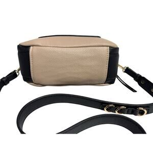 Pebbled Vegan Leather Closure: Zipper Additional Shoulder Strap Drop: 24" Exterior Details: Colorblocked body, double zipper, 2 zip compartments, back slip pocket Inside Features: Fabric lined, 1 slip pocket, 1 zip pocket Extras: Detachable shoulder strap + extended zipper pulls Dimensions: 9" L x 3.5" W x 5.5" H
