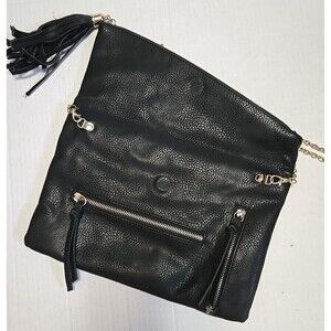 Urban Expressions Bag Black Crossbody Vegan Leather Fold-Flap Shoulder Purse