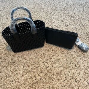 Urban Expressions Black Woven Mini Tote Handbag with Crossbody Strap Brand New