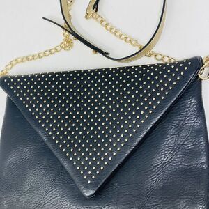Urban Expressions Black Messenger Studded Crossbody Bag Faux-Leather Gold Strap