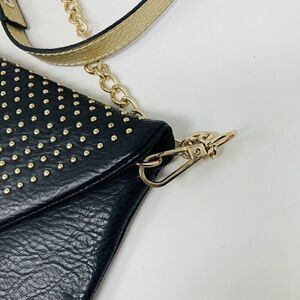Urban Expressions Black Messenger Studded Crossbody Bag Faux-Leather Gold Strap.