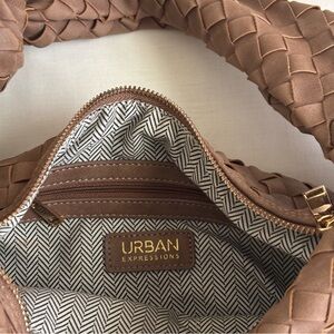 𐙚 Urban Expressions Brown Vegan Woven Hobo Knot Bag