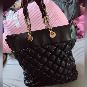 Urban Expressions Designer Chic Black Tote Bag with Gold Accents
