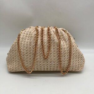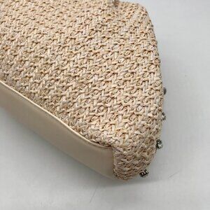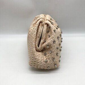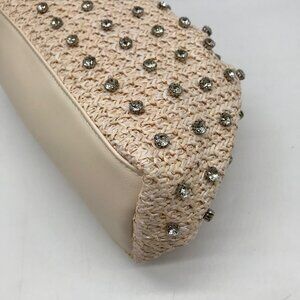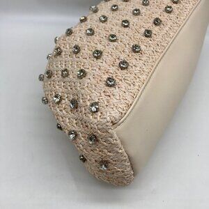 • Exterior: straw-like woven pattern with studded diamond-esque embellishments
