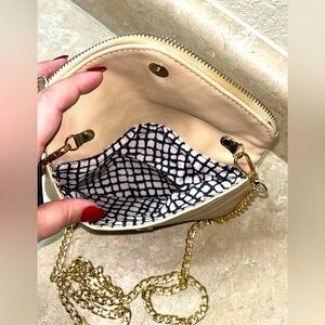Urban Expressions Quilted Vegan Leather Crossbody Clutch Beige Removable Chain
