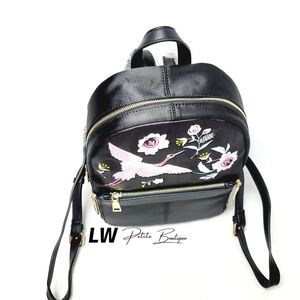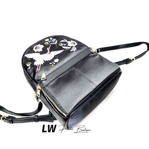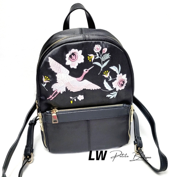 Embroidered heron and flowers, DETACHABLE outer zip pocket Inside