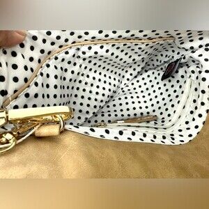 -This bag is new but has a small stain on the top left of the bag that looks like a color transfer but is barely noticeable. Other than that, the bag is in great condition