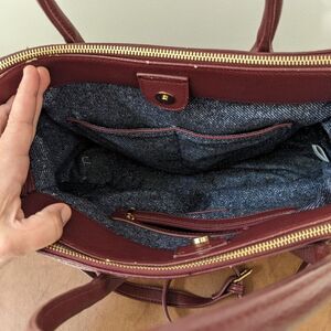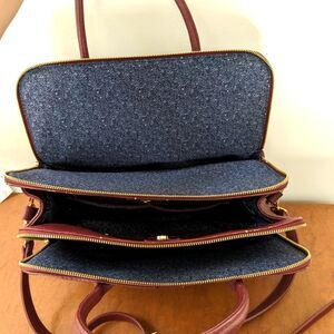 Easily holds tablets or planners on the side zip pockets. Comes with a detachable shoulder strap. Super classic and versatile. Some wear as shown in pictures.