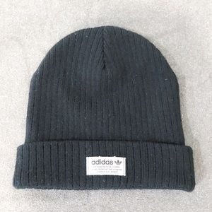 Black (worn twice) ribbed Adidas beanie.