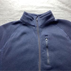 Urban Frontier front Zip Fleece Jacket Size Large. Gently used condition. Stand up collar. 2 front pockets. Left chest zip pocket. Dark Blue. Measures chest 48”, length 27.5”, sleeve 26”.