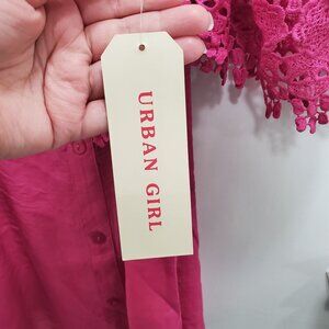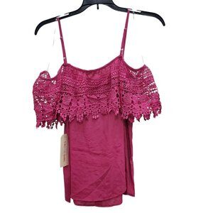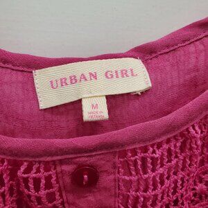 Urban Girl Junior's Magenta Crochet Off Cold Shoulder Button Up Boho Top NWT M