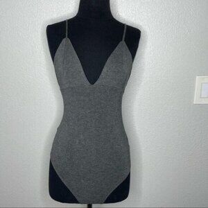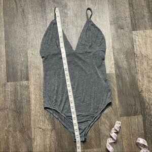 Charcoal grey stretchy bodysuit will look great with jeans, skirts or shorts. One of those must have pieces.