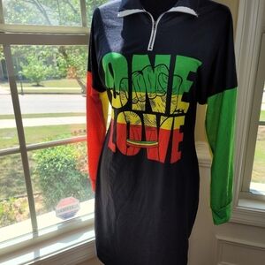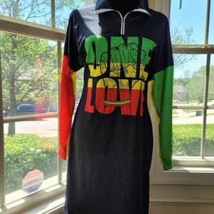 Urban Look letter print sheath dress , polyester/spandex, dropped shoulder long sleeves, mandarin collar with front zip, 36" shoulder to hem, 23" arm pit to arm pit, fits at or just above the knee, Bold, beautiful fashion statement, NWOT, never worn/used