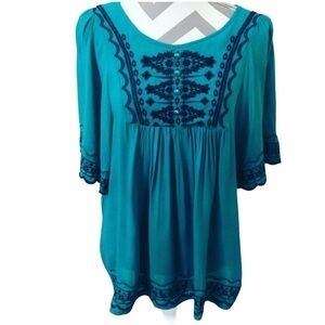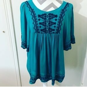 Urban Mango boho embroidered top size small in excellent condition, color green and blue, approximately measurements