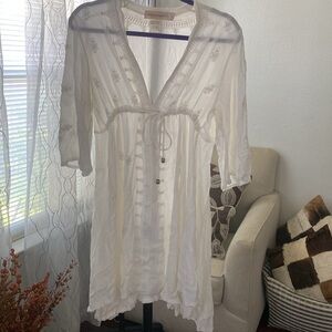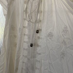 This elegant white tunic features intricate embroidery, perfect for a chic and stylish look. Ideal for any occasion, it offers both comfort and sophistication.