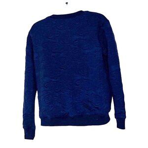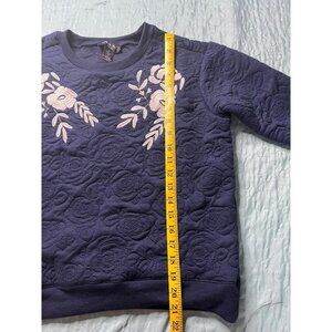 Urban Mood Navy Quilted Pullover Crewneck Top with Embroidered Flowers Sz XXS