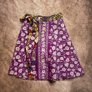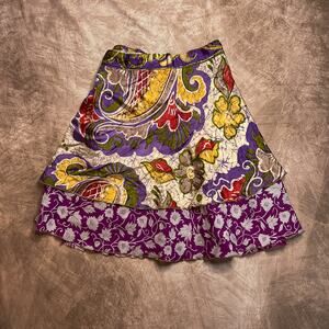 Urban Nomad Floral Silk Wrap Mini Skirt Reversible Multicolor Layered Bohemian