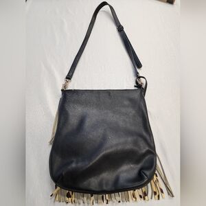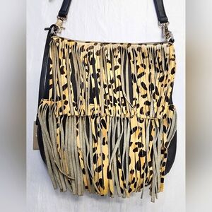 Urban Orginal Women's Brown/Black Leather Fringe Animal Print Crossbody Bag