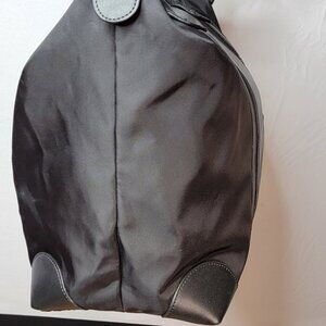 * Exterior: Sleek black finish with structured front panel and embossed logo