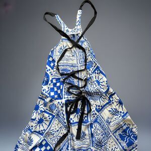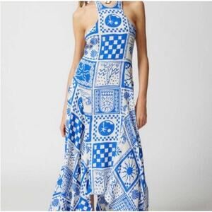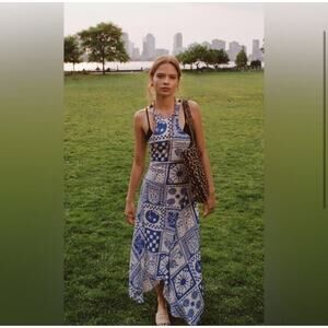 Urban Outfitter Ecote Blue & White Grecian Graphic Flowy Strappy Maxi Dress S