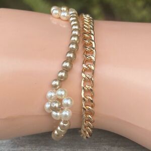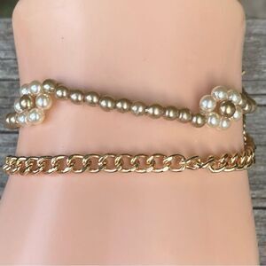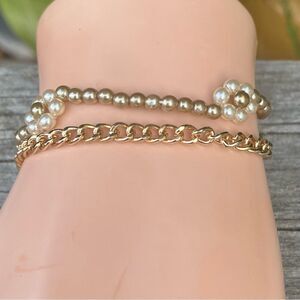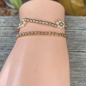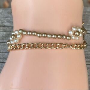 New Urban Outfitter Two (2) Bracelets Beaded Floral & Gold Tone Chain