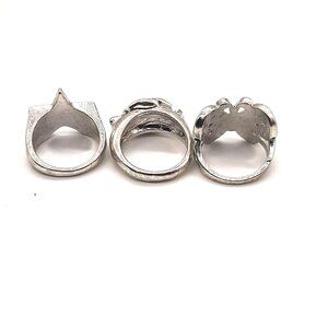Add some celestial, floral, and fluttery flair to your fingers with this trio of shiny silver-tone rings.