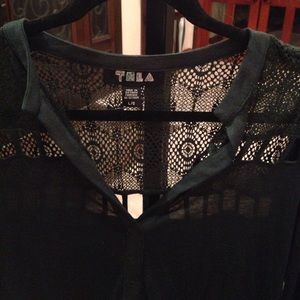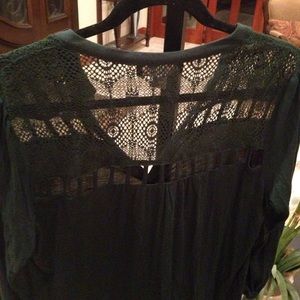 Hunter green Urban Outfitters shirt; Three-quarters length; Soft cotton; V-neck with cutout embellishments and designs on front and top of the back- USED ONCE, GREAT CONDITION