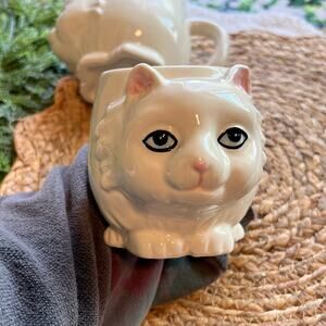 Urban Outfitters 3D Cat Mug Kitten White Coffee Tea Cup Ceramic Stoneware Set/2