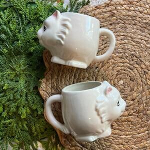 Urban Outfitters 3D Cat Mug Kitten White Coffee Tea Cup Ceramic Stoneware Set/2