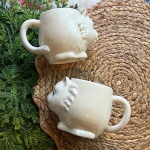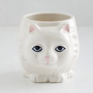 Urban Outfitters 3D Cat Mug Kitten White Coffee Tea Cup Ceramic Stoneware Set/2