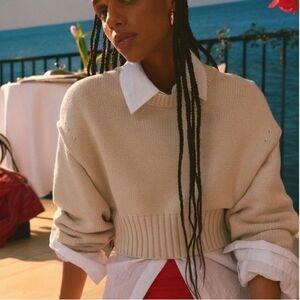 Urban Outfitters Aiden Pullover Sweater Ivory White Cropped Knit Top Size XS NWT