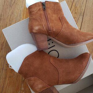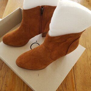 Urban Outfitters Westie Welt Cognac Brown Suede Zippered Heel Ankle Boots SZ 7