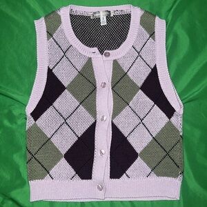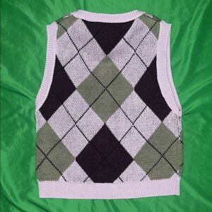 Urban Outfitters Argyle V-Neck Sweater Vest - Black, Green, Purple size Small